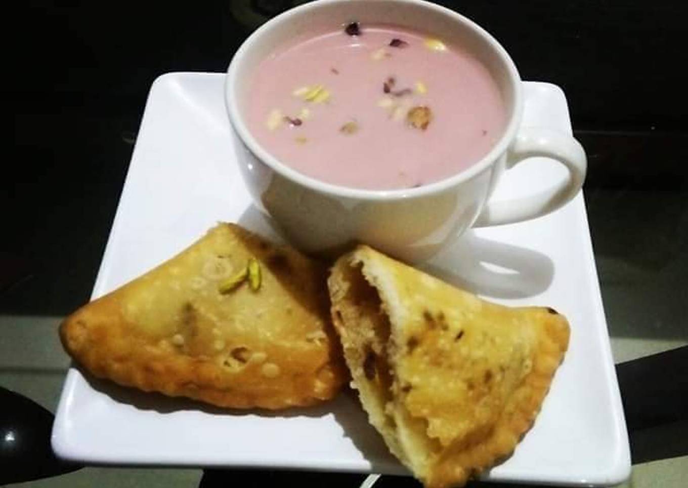 - Add nuts and enjoy with meetha samosa😍😋